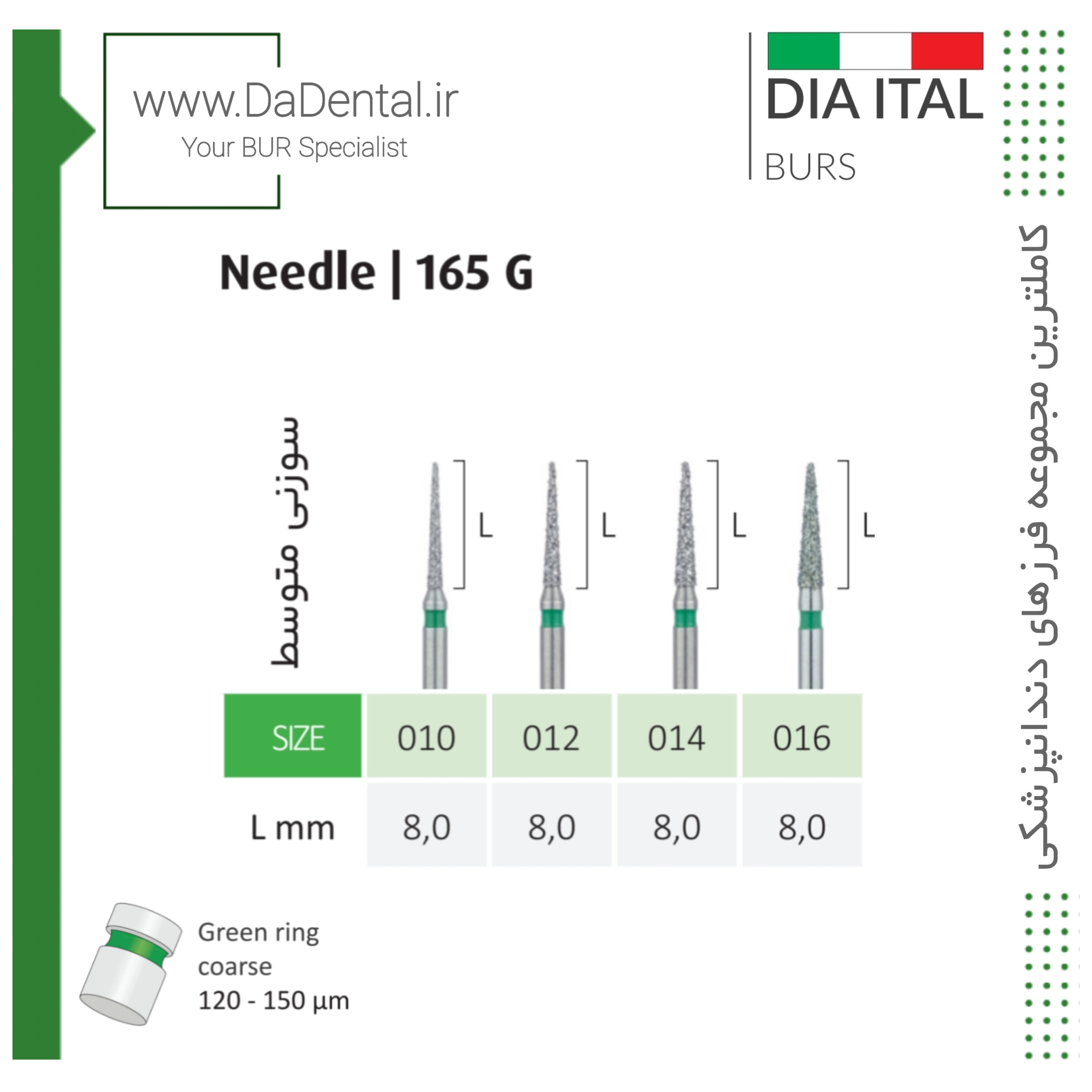 فرز نیدل متوسط الماسی دور سبز دیا ایتالی کد G165