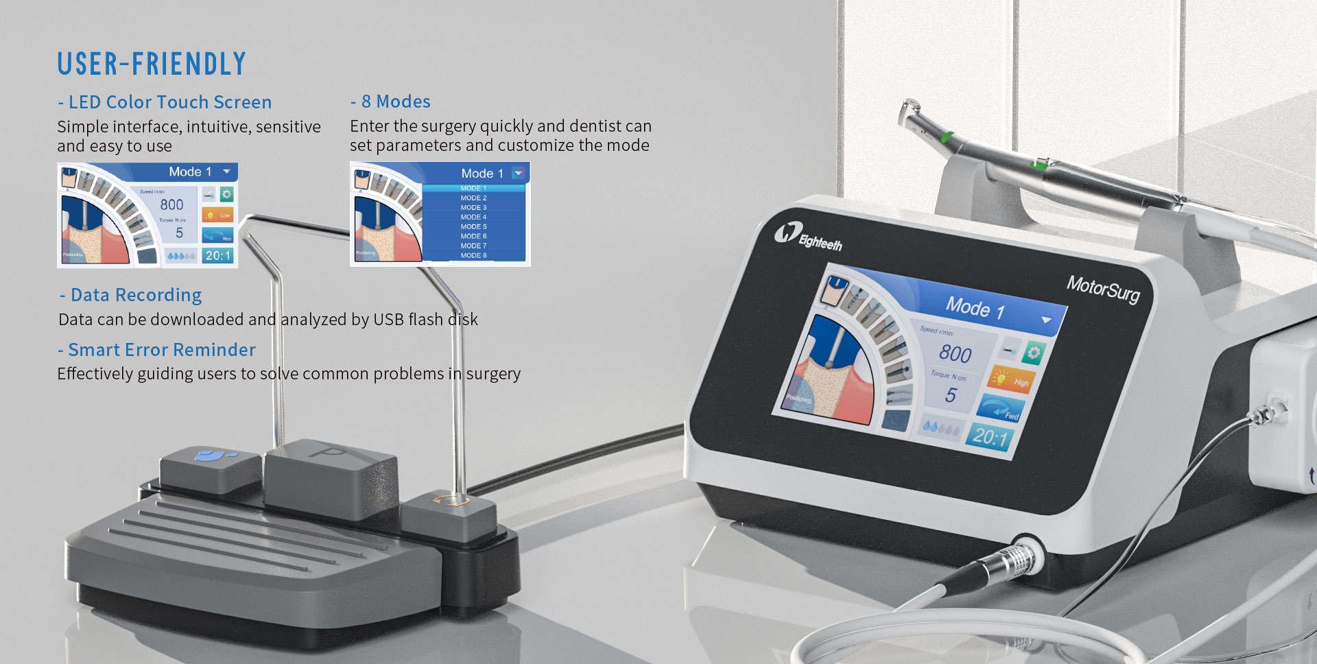 موتور ایمپلنت پیشرفته ایتیس ابزاری حرفهای برای دندانپزشکان و جراحان فکوصورت است که با ترکیب قدرت بالا، دقت بینظیر و کنترل کامل بر سرعت و گشتاور، تجربهای ایمن و کارآمد در انجام جراحیهای ایمپلنت دندانی فراهم میآورد.این موتور با طراحی مهندسیشده، قابلیت ارائه گشتاور پایدار حتی در سرعتهای پایین را دارد و به شما این اطمینان را میدهد که ایمپلنت را با کمترین فشار و بیشترین دقت جایگذاری کنید.