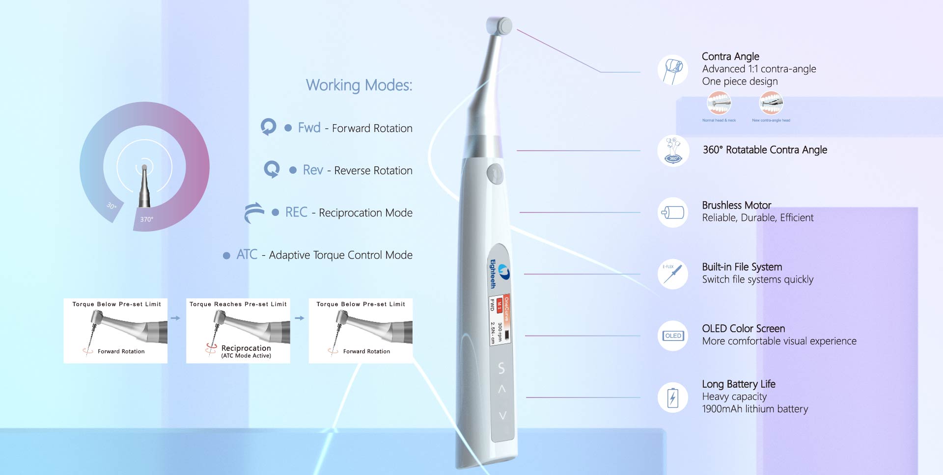 یکی از قابلیت های دستگاه اندو موتور ایتیس EValue داشتن قابلیت تنظیم تورک است. زمانی که در داخل کانال به تورک مورد نظر برسد، عمل ریورس اتفاق خواهد افتاد و از شرکستن فایل جلوگیری خواهد کرد.