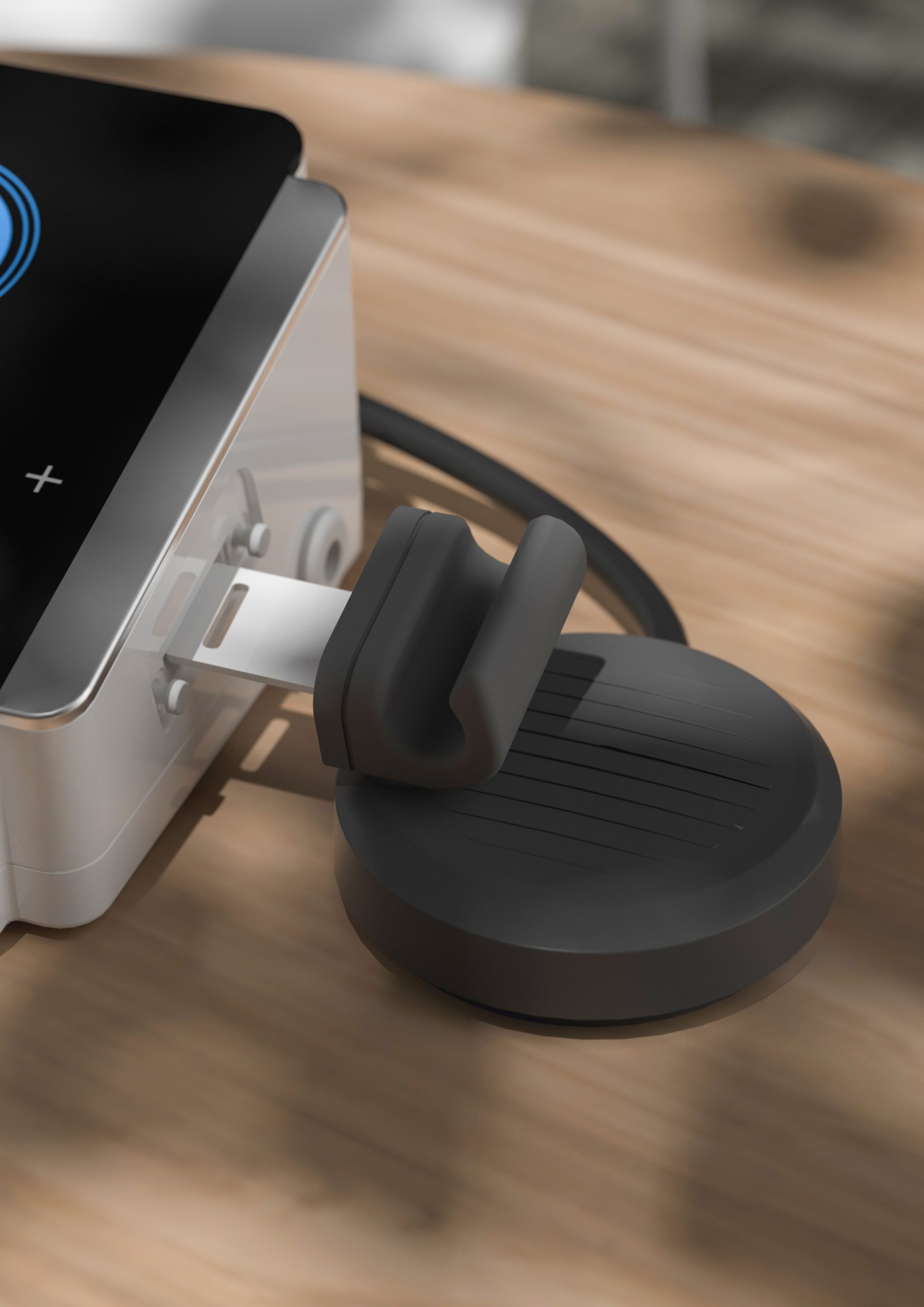 این محصول به یک پدال پایی مجهز است که سوئیچ آن کمتر از 2 سانتی متر ارتفاع دارد. دندانپزشک با فشردن پدال هندپیس دستگاه را فعال کرده و آب را از طریق شیلنگ متصل به پدال به سمت نوک هندپیس هدایت می کند.