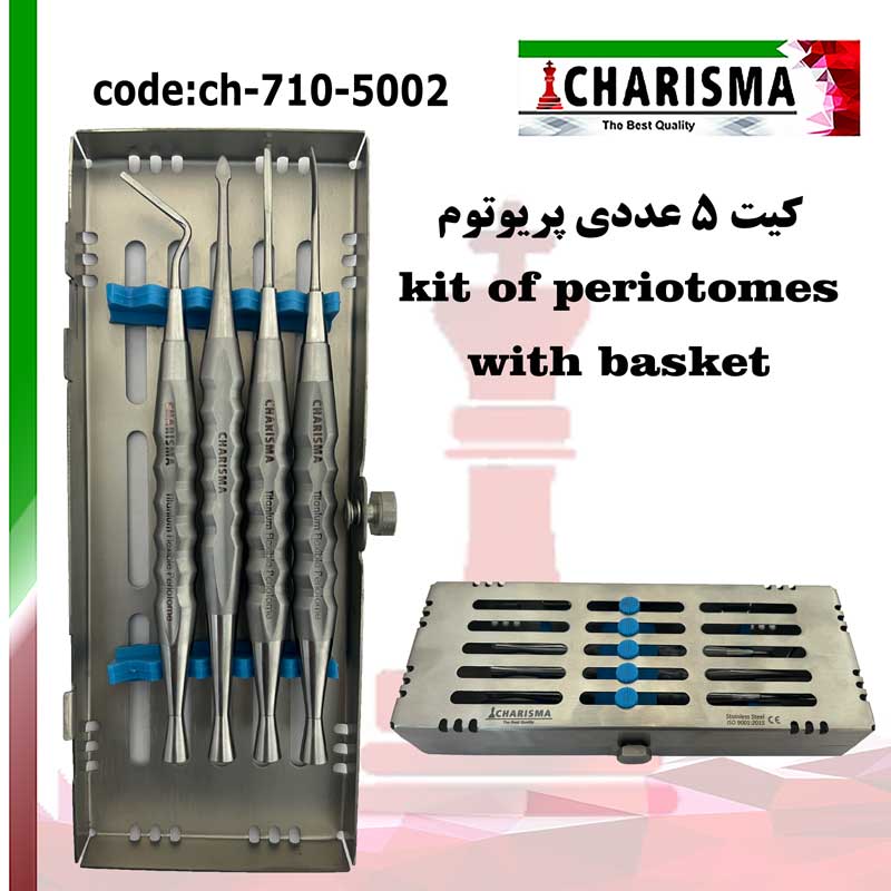 - کیت 5عددی : – پریوتوم فلکسیبل سرصاف ارگونومیک – پریوتوم فلکسیبل منحنی ارگونومیک – پریوتوم سرکج فلکسیبل ارگونومیک – پریوتوم تیتانیومی نوک مثلثی دسته ارگونومیک – به همراه بسکت 5عددی قفلدار (برای توضیحات بیشتر به اسم محصول در سایت مراجعه کنید)