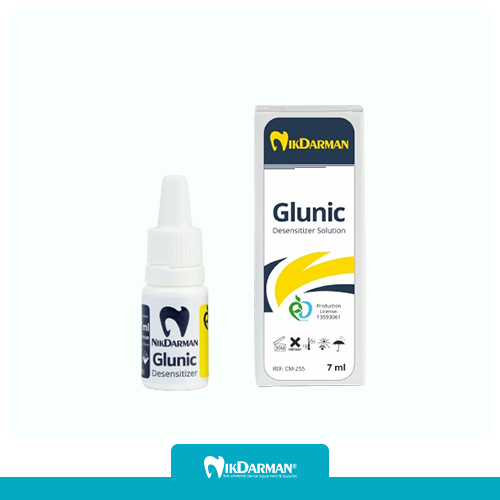 محلول ضدحساسیت Glunic Desensitizer یک محلول بسیار موثر و کارآمد در تسکین سریع درد های دندانی ناشی از حساسیت و عامل ضد پوسیدگی می باشد، گلونیک با سیل کردن توبول های عاجی مانع از حرکت مایع درون توبول ها و کاهش درد می شود.